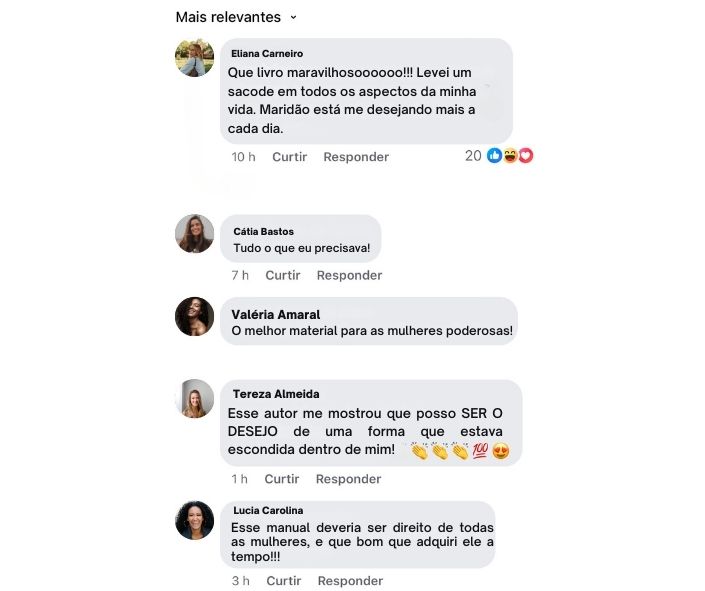 "Seja o Desejo: Como Virar o Jogo da Sedução", é um livro que reúne todo meu conhecimento e experiência para fornecer estratégias práticas e eficazes. Através dele, compartilho não apenas teorias, mas também ensinamentos aplicáveis que qualquer mulher pode usar para transformar sua vida amorosa.